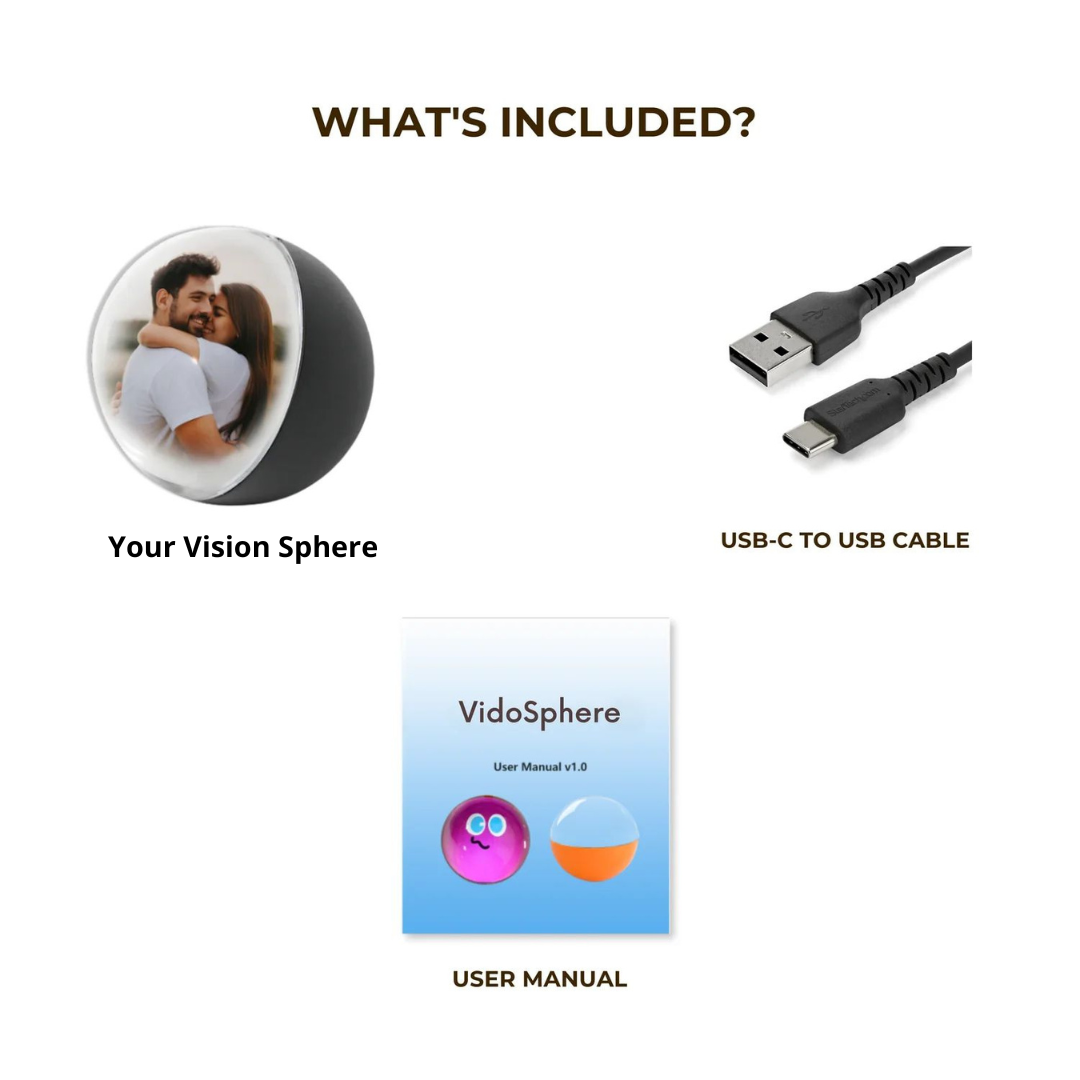 Your Vision sphere comes whit everything you need: the customizable sphere, and a user manual guide your step-by-step